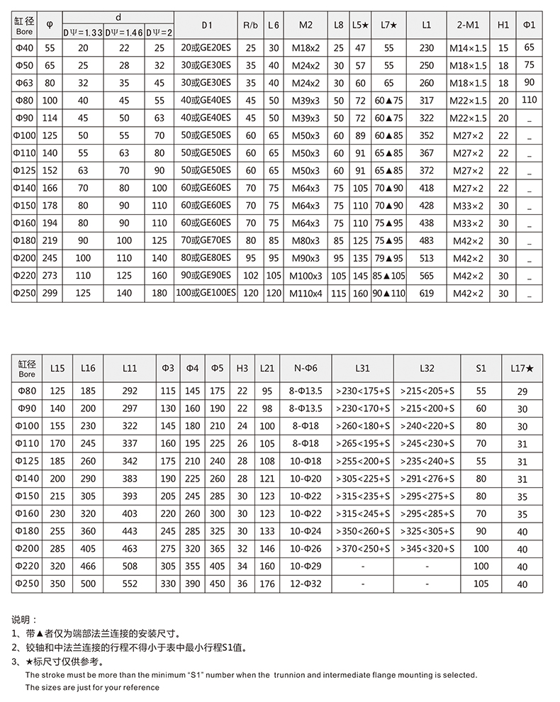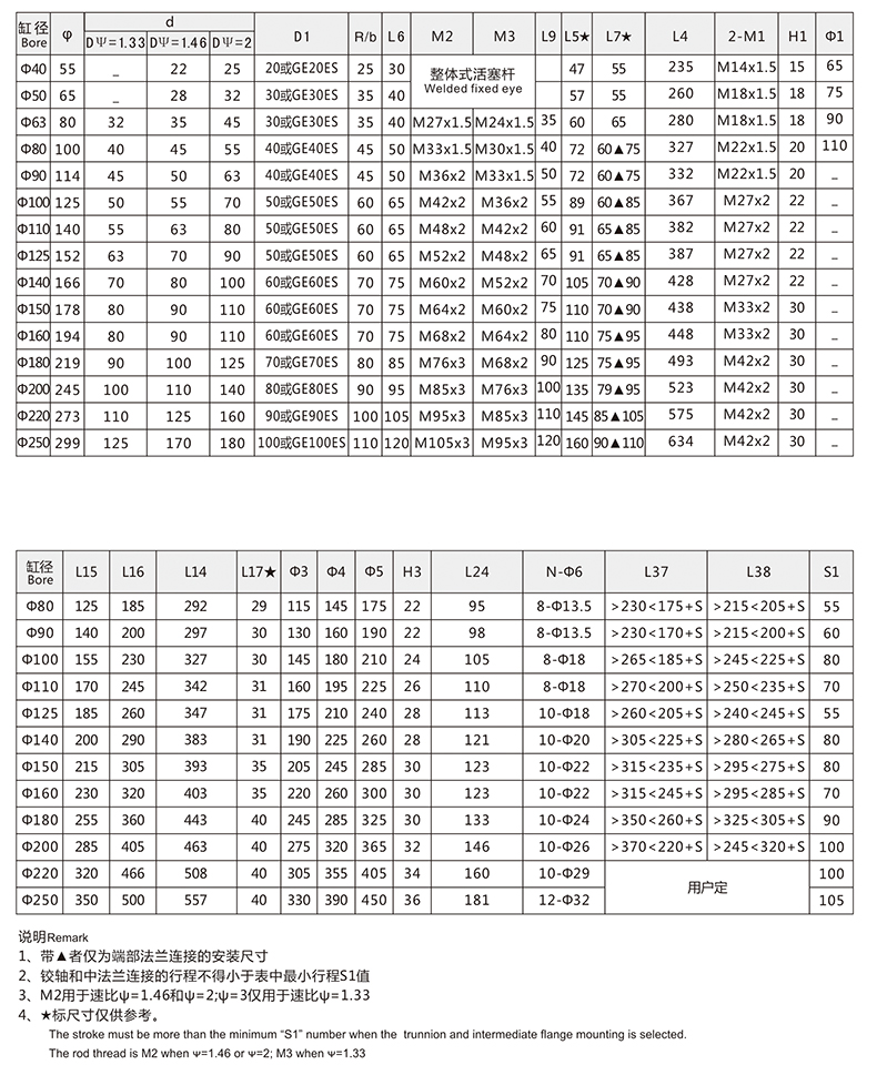 活塞桿端為內(nèi)螺紋桿頭耳環(huán)連接