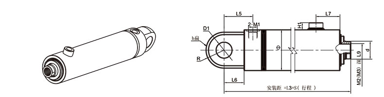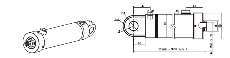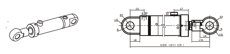 活塞桿端為外螺紋桿頭耳環(huán)連接