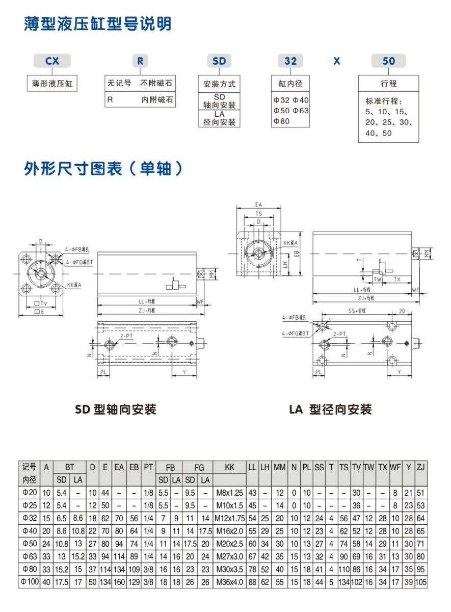 CX-LA徑向安裝模具油缸 外形安裝尺寸圖