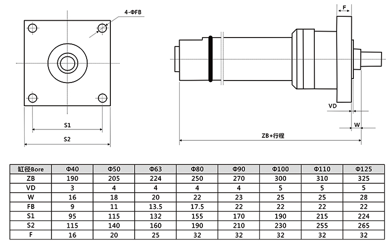 冶金液壓缸頭部方法蘭外形安裝尺寸圖