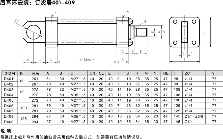 后耳環升降油缸