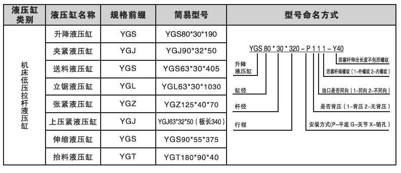 漢力達帶鋸床油缸型號命名方式